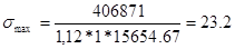 где принимаемое по таблице 52* СНиП II-23–81* в зависимости от временного сопротивления проката.Rp =327кН/м2 т. к. Ru =360 кН/м2