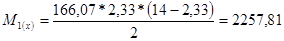 0,002 < 0,0025 В процессе окончательного расчета размеры поперечного сечения балки могут корректироваться. Сечение считается подобранным правильно, если оно удовлетворяет перечисленным условиям прочности и жесткости. Изменения сечения балки. Место изменения сечения поясов балки принимают на расстоянии x от опоры (рисунок 13): X = (1/5 ÷ 1/6)*L(2.16) 1/5*L=1/5*14=2.8 м. 1/6*L=1/6*14=2,33 м. Принимаем X=2,33 м. Находим расчетный момент в сечении:
