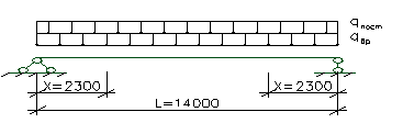 Рисунок 5 – Расчетная схема балки настила второго варианта Погонная равномерно-распределенная нагрузка на единицу длины балки определяется по формуле 1.1: qп = (22 + 0,942) * 1,3 = 29,824 кн/м где qвр = 22 кн/м2 ; qпост = qпост *1,2 qпост = 0,785 * 1,2 = 0,942 кн/м2 . Расчетная нагрузка на единицу длины балки настила определяется по формуле 1.2: q = (22 * 1,2 + 0,942 * 1,05) * 1,3 = 35,606 кн/м Определяем максимальный расчетный изгибающий момент в балке настила по формуле 1.3: Ммах