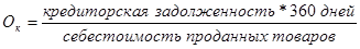 4. оборачиваемость кредиторской задолженности, в днях – характеризует скорость погашения кредиторской задолженности предприятия, формула (2.13).