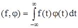тогда, как легко проверить, j(t) ÎK. 1.Обобщенные функции Определение. Обобщенной функцией f(t) (заданной на прямой (-¥ < t<¥)) называется всякий непрерывный линейный функционал на пространстве основных функций. Он может быть представлен в виде скалярного произведения (f(t), j(t)) , j(t) ÎK(Km ). Всякая интегрируемая функция f(t) порождает обобщенную функцию, так как скалярное произведение