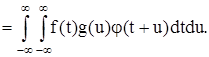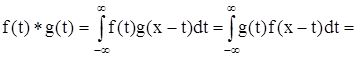 если только интеграл существует и интегрируем по любому конечному интервалу переменной х. Равенство двух интегралов легко проверить, сделав замену z= x-t. Если f(t), g(t) – регулярные обобщенные функции и j(х) ÎK, то можно записать