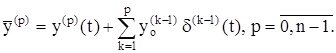 и соответствующие обобщенные функции. Начальные условия в этом случае являются скачками функции y(t) и ее производных до n-1-го порядка включительно в точке t= 0. Действительно, рассмотрим вначале случай, когда у функции y(t) только скачок yo , тогда