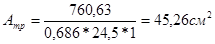 где N- расчетное сжимающее усилие в стержне Ry = 24,5 кН/см2 – расчетное сопротивление по пределу текучести выбранной марки стали φ - коэффициент продольного изгиба, зависящий от гибкости стержня λ (для поясов ферм λ=80-100, для решетки λ = 100-130) γc = 1 (кроме промежуточных раскосов и стоек γc = 0,8) – коэффициент условий работы Верхний пояс : максимальное усилие N = -760,63кН, φ=0,686