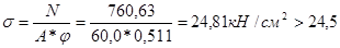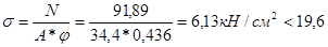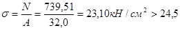 Стойки 2 и 3: усилие N = -44,37кН, φ=0,419