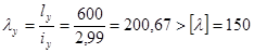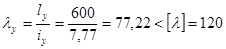 Принимаем уголок равнополочный 180*12 мм А= 84,4 см2 , ix =5,59 см, iy =7,77 см Определение гибкости: