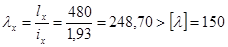 Принимаем уголок равнополочный 110*8 мм А= 34,4 см2 , ix =3,39 см, iy =4,87 см . Определение гибкости: