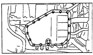 ![]() Надев защитные резиновые перчатки, выверните сливную пробку и спустите трансмиссионное масло в приготовленную емкость, корректируя положение последней по мере ослабевания напора струи. - Отверните 18 болтов и снимите поддон вместе с прокладкой. Прокладка поддона подлежит замене в случае механических повреждений. - Снимите два магнита с поддона и с их помощью соберите все металлические частицы с поддона. Наличие металлических частиц в поддоне указывает на присутствие продуктов износа АКПП. Это свидетельствует о возможном износе подшипников, шестерен и дисков. - Очистите поддон от грязи. Для очистки используйте ветошь и специальные чистящие жидкости. Так же допускается использование автомобильного бензина любой марки.
