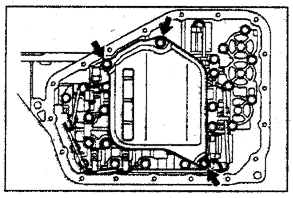 Отверните три болта и снимите фильтр АКПП. - Снимите прокладку с фильтра. В случае повреждения либо износа прокладка подлежит замене.