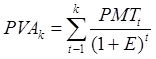 где PMTt – будущие поступления денежных средств в конце периода t; E – норма доходности по инвестициям; K – число периодов, на протяжении которых в будущем поступят доходы от современных инвестиций. В случае, если денежные поступления одинаковы в каждом периоде, формулу можно упростить и представить в следующем виде: