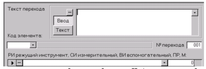 Введённый текст перехода не будет внесён в ИБ, а сохраниться только в ТП. После ввода текста перехода можно добавить необходимое оснащение. Тип вводимого оснащения задается первыми буквами вводимой строки. Например, РИ: