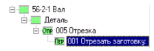 Перевод курсора в поле «Б оборудование, ПР приспособление, М вспом. материал…» вызывает появление пункта «005 Отрезка» в дереве классификации КТП. Для назначения оборудования можно выбрать