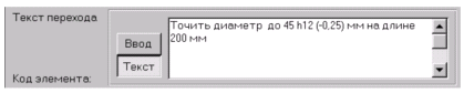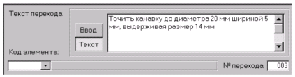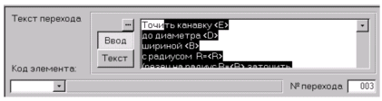 Код элемента можно вводить и с клавиатуры, прямо в поле кода. Введенный код добавляется к списку кодов элементов детали, но задать значения параметров элемента можно только перейдя в группу «Деталь». Теперь достаточно выбрать кнопку [Пересчитать], чтобы система заполнила текст перехода:
