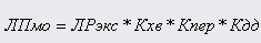 ЛРэкс – общий объем доступных для эксплуатации лесных ресурсов, млн. куб. м; Кхв – коэффициент хвойности – доля хвойных пород древесины в общем объеме спелых и перестойных лесных ресурсов, доступных для эксплуатации; Кпер – коэффициент перестойности – доля спелых и перестойных лесов в общем объеме доступных для эксплуатации лесных ресурсов; Кдд – коэффициент выхода деловой древесины – доля деловой древесины в объеме расчетной лесосеки. Для стоимостной оценки лесного потенциала используется показатель ежегодного потенциального лесного дохода муниципального образования (ЛДмо), определяемый по формуле: ЛДмо=ЛДуд *РЛ*Кдд , гдеРЛ – расчетная лесосека МО,Кдд – коэффициент выхода деловой древесины, ЛДуд – лесной доход на 1 куб. метр деловой древесины. При этом: