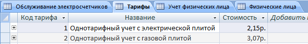 В таблице учет физических лиц хранится информация о тарифах.