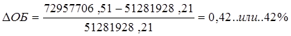 где ОБпред , ОБнаст - сумма обязательств, состоящая из кредиторской задолженности, кратко- и долгосрочных кредитов, за предыдущий завершенный финансовый год и на дату анализа соответственно. Подставим в указанную формулу значения предприятия: