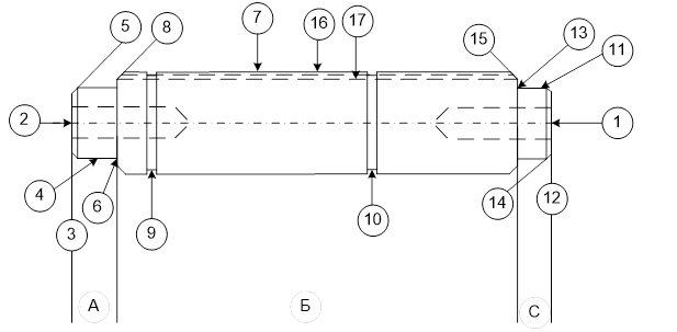 Рисунок 2. Технологический эскиз детали 2.1 Определение структуры технологического процесса по переходам и установам Перечень технологических переходов и установов для каждой операции, принимаемых для достижения конечной точности и шероховатости, проставленных на рабочем чертеже вала приводится в таблице №1. Таблица №1. Технологический маршрут изготовления детали