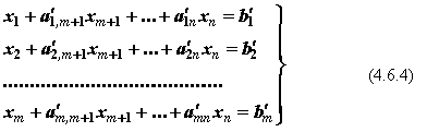 При этом значения bi должны быть неотрицательными. В случае bi < 0 обе части уравнения умножают на» – 1». Заметим, что при максимизации z задача сводится к стандартной путём замены: max z = – min (– z ). Систему (4.6.3) после несложных преобразований можно привести к виду: