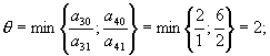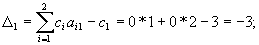 Для базисных переменных оценки всегда равны нулю. Значение критерия для данного начального базиса будет равно нулю: L=åci ai 0 =0*2+0*6=0; Так как имеются Dj <0 приступаем к улучшению плана. Первая итерация В базис вводим вектор A1 , которому соответствует минимальное значение Dj . Из базиса выводим вектор A3 , так как минимальное q достигается при i=3.