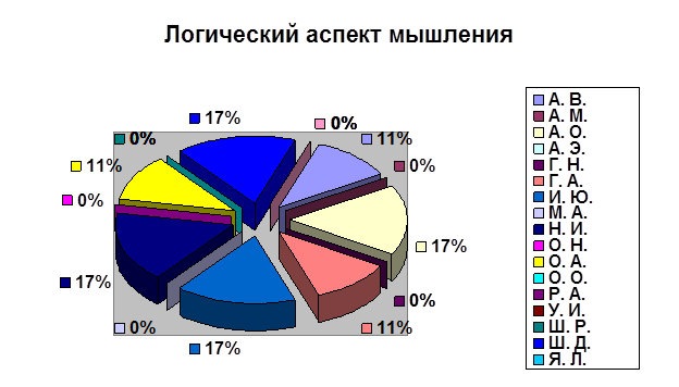 В данной методике нам предлагается оценить логический аспект мышления. 2.3. Обсуждение результатов При сравнительном анализе логического мышления нами были получены такие результаты. В I группе показало, что у большинства испытуемых низкий уровень одиночества, что составляет 58, 8 % (10 чел). Для таких людей характерно слабое развитие мышления. Второе место занимает средний уровень логического мышления, что составляет 23,6 % (4 чел). Для них характерно умение абстрактно мыслить и быстро ориентироваться. И лишь 17, 6 % (3 чел) – хорошую норму большинства людей. Характерно, что хорошо развито логическое мышление. Во II группе у большинства испытуемых средний уровень логического мышления, что составляет 46,5 (6 человек). Для них умение абстрактно мыслить и быстро ориентироваться. Второе место занимает низкий уровень логического мышления, что составляет 23% ( 3 человека). Для них характерно слабое развитие мышления. Результаты нашего исследования показали, что большинство испытуемых как студентов – это 58.8% (15 чел) и средний уровень у школьников 45.5% (6 чел) – ученики. Рассматривая категорию учеников средней школы, можно сделать вывод, что логическое мышление на низком уровне просматривается у пяти респондентов. Для выявления значимости логического аспекта мышления мы использовали Т-критерий Стьюдента для независимых выборок. В первую очередь мы определили среднее значение двух выборок, также определили стандартное отклонение 2 выборок который показал, достоверна или недостоверна выдвинутая гипотеза что, субъективное ощущение одиночества подросткового возраста и юношеского возраста на низком уровне. При уровне 0,1, мы получили результат 0,8. Это означает что, показатели достоверны, то есть разница между логическим аспектом мышления подросткового возраста и юношеского возраста нет. Таблица №2