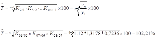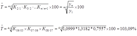 ) – это соотношение последующего уровня ряда к предыдущему (цепные темпы роста) или постоянному, принятому за базу сравнения (базисные темпы роста). Средний темп роста
