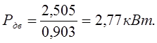 В соответствии с заданной мощностью (Рв = 2,5025 кВт (Рв = Ft∙V=4,5∙0,55)) на выходном валу привода и расчётным значением общего КПД передаточного механизма (