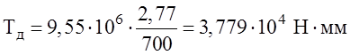 где Рдс – номинальная мощность на валу двигателя в кВт, nд – номинальная частота вращения вала электродвигателя, мин-1.