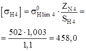 где [sH] − расчетное допускаемое контактное напряжение для материалов зубчатой пары, МПа; [sH] = 469,4 МПа;