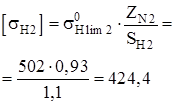 где [sH] − расчетное допускаемое контактное напряжение для материалов зубчатой пары, МПа; [sH] = 424,4 МПа;