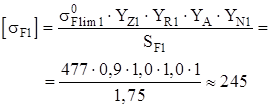 где [ Фактическое значение коэффициента нагрузки при расчете на прочность зубьев при изгибе:
