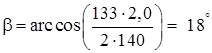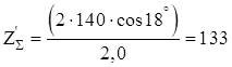 Расчетную величину межосевого расстояния а' округлим до ближайшего стандартного значения а. а1 = 140 мм. 4.2 Руководствуясь зависимостями назначается номинальный модуль зацепления m m= (0,01…0,02) · а = (0,016…0,0315) · 140 = (1,4…2,8). m = 2,0 мм. 4.3 Зададимся предварительным значением угла наклона линии зубьев 4.4 Определим суммарное число зубьев шестерни по зависимости