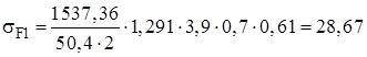 где KFV − коэффициент, учитывающий внутреннюю динамическую нагрузку. KFV2 = 1 + 0,045·V2; KFV2 = 1+0,045·1,69=1,07605. KFb2 − коэффициент, учитывающий неравномерность распределения нагрузки по длине контактной линии при расчете на прочность зубьев при изгибе. Значения KFb определим в зависимости от расположения зубчатых колес проектируемой передачи относительно опор, твердости рабочих поверхностей зубьев и относительной ширины ybd колеса. KFb2 = 1,2. KFa2 − коэффициент, учитывающий распределение нагрузки между зубьями при расчете их на изгибную прочность. Величину KFaпринимаем с учетом назначенной степени точности передачи. KFa2 = 1 KF2 = 1,07605·1,2·1 = 1,291. Проверяем усталостную прочность зубьев шестерни и колеса по напряжениям изгиба, сопоставляя местные напряжения изгиба