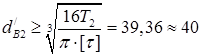Наименьший диаметр промежуточного вала dB2, мм, равен: