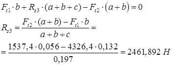 Тихоходный вал В опоре А (рисунок 3.3) суммарная реакция