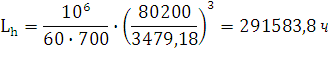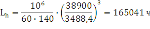 Долговечность выбранных радиальных шарикоподшипников Lh, ч, определим по формуле: