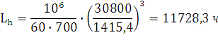 n =700 мин-1; С = 30800 Н; V= 1; Кт = 1. Приведенная нагрузка равна