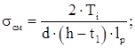 где Ti– вращающий момент, Н • мм, передаваемый валом; d, h, b, t1 – размеры соединения, мм; 1 р – расчетная длина шпонки, мм, которая для призматической шпонки с закругленными торцами равна