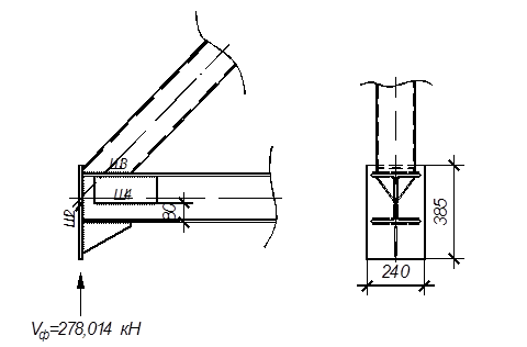 Окончательно принимаем Шов Ш3 Швом Ш3 приваривают стенку восходящего опорного раскоса к полке двутавра нижнего пояса фермы. Его катет назначают из условия равнопрочности со стенкой раскоса: