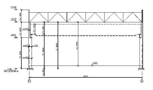 Окончательный размер Высота цеха от уровня пола до низа стропильных ферм: