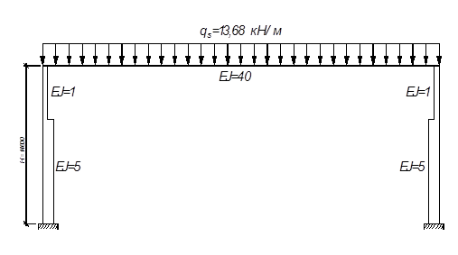 Рисунок 13 – Схема к расчету на постоянную нагрузку 2.2.2 Снеговая нагрузка Погонная снеговая нагрузка на ригель рамы равна: