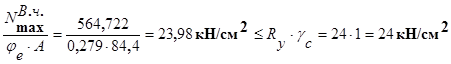 т.е. проверка общей устойчивости выполняется. Выполним проверку устойчивости нижней части колонны для расчетных усилий догружающих шатровую ветвь.