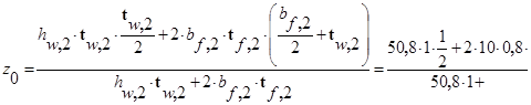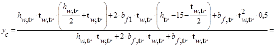 т.е. условие выполняется с недонапряжением 43%, но сечение не измененяем, так как оно принято минимальным. Определяем положение центра тяжести шатровой ветви: