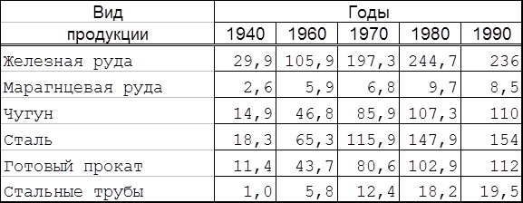 Главное направление развития черной металлургии в перспективе - улучшение качества и увеличение выпуска более эффективных видов продукции. Это будет достигнуто благодаря: опережающему росту сырьевой базы, повышению содержания железа, марганца и хрома в концентратах, освоению технологии обогащения окисленных железных кварцитов; изменению пропорций между способами выплавки стали в пользу кислородно-конвертерного и электросталеплавильного переделов при абсолютном сокращении мартеновского способа; совершенствованию структуры прокатного производства путем опережающего роста выпуска холоднопрокатного листа, проката с упрочняющей термической обработкой, фасонных и высокоточных профилей проката, экономичных и специальных видов стальных труб, в том числе многослойных труб для газопроводов; применению прогрессивных технологий, особенно в связи с прямым восстановлением железа из руд, развитием порошковой металлургии, специальных переплавов и внепечной обработки стали, непрерывной разливки стали; более полному использованию лома черных металлов и металлосодержащих отходов. Выпуск готового проката будет увеличивается без роста производства чугуна. Намечено улучшить структуру металлопродукции путем производства листового проката, проката из низколегированной стали и с упрочняющей обработкой. Планируется расширить производство труб для нефте- и газопроводов. Черная металлургия имеет следующие особенности сырьевой базы: сырье характеризуется относительно большим содержанием полезного компонента - от 17% в сидериновых до 53-55% в магнетитовых железняках. На долю богатых руд приходится почти пятая часть промышленных запасов, которые используются для обогащения; разнообразие сырья в видовом отношении (магнетитовые, сульфидное, окисленное и др.), что дает возможность использовать разнообразную технологию и получать металл с самыми различными свойствами; различные условия добычи (как шахтная, так и открытая, на долю которой приходится до 80% всего добываемого в черной металлургии сырья); использование руд, сложных по своему составу (фосфористые, ванадиевые, титаномагнетитовые, хромистые и др.). При этом более 3/5 составляют магнетитовые, что облегчает возможность обогащения. Произошли структурные сдвиги в производстве стали. В настоящее время основной способ выплавки стали - мартеновский. На долю кислородно-конвертерного и электросталеплавильного способов приходится только около 1/2 общего объема производства. Изменения в черной металлургии обусловлены ростом производства металлических порошков, использование которых дает возможность улучшить качественных характеристики выпускаемой продукции, снизить её трудоемкость и металлоемкость. Исключительно важно освоение в промышленных масштабах технологии получения железа из руд методом прямого восстановления, которое к тому же является значительно менее энергоемким, чем доменное производство. На территории Курской магнитной аномалии (КМА) в настоящее время действует Оскольский электрометаллургический комбинат, проектная мощность которого 5 млн.т металлизированных окатышей и 2,7 млн.т проката в год. Для черной металлургии характерно сильно развитое производственное комбинирование. Особенно большую выгоду дает комбинирование металлургического передела с к