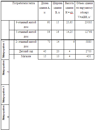 Содержание Введение 1. Характеристика природных условий 2. Определение расчетных расходов тепла на отопление, вентиляцию, горячее водоснабжение 3. Выбор способа регулирования тепловой нагрузки 4. Расчет расходов теплоносителя в тепловых сетях 5. Гидравлический расчет тепловых сетей 6. Составление и расчет принципиальной тепловой схемы котельной 7. Расчет и выбор основного и вспомогательного оборудования 8. Определение диаметров и типоразмеров основных магистральных трубопроводов котельной 9. Обоснование выбора и расчет водоподготовительного оборудования 10. Мероприятия по охране окружающей среды 11. Мероприятия по охране труда 12. Специальная часть. Расчет и выбор дымовой трубы 13. Экономическая часть Заключение Список литературы Введение Целью дипломного проекта является разработка системы централизованного теплоснабжения жилых районов г. Владимир источником тепла которого является городская котельная. В ходе работы необходимо произвести расчет расхода теплоты на отопление, вентиляцию и ГВС для всех районов, гидравлический расчет для тепловых сетей. Проектируемая производственно- отопительная котельная находится в городе Владимире. Водоснабжение котельной осуществляется из городского водопровода. Забор воздуха на горение осуществляется с улицы и непосредственно с котельного помещения. Система теплоснабжения, для нужд отопления и вентиляции, закрытая. Регулирование качественное по отопительному графику с температурой 120- 70 °С. Транспортная сеть района строительства представлена железными дорогами общего пользования и автодорогами местного значения. Проект производственно - отопительной котельной разработан на основании задания проектирования. 1. Характеристика природных условий Тепловая сеть проектируется для жилого района города Владимир при расчетных температурах отопительного периода для отопления -28 °С и для вентиляции -16 °С и скорости ветра в январе Источником тепловой энергии служит городская котельная, расположенная в промышленной зоне. Теплоносителем для транспортировки тепловой энергии является вода. Система теплоснабжения закрытая, количество трубопроводов в тепловой сети две: подающая и обратная. Температура воды в подающей магистрали 120 °С, в обратной 70 °С. Обеспечение потребителей тепловой энергией осуществляется посредством проборов отопления, вентиляции и горячего водоснабжения. 2. Определение расчетных расходов тепла на отопление, вентиляцию и горячее водоснабжение Расчетные тепловые нагрузки на отопление и вентиляцию зависят от температуры наружного воздуха для данного района, наружного объема зданий и их удельных характеристик. Для начала определим объем зданий по наружному обмеру Объем зданий по наружному обмеру: V=ABH, м где А – длина здания, м; В – ширина здания, м; Н – высота здания( Н = nh, n– количество этажей, h– высота одного этажа, м), м. Высоту одного этажа примем: жилой 5, 9- этажный дом h=2,85 м; жилой 8- этажный дом h=2,7м; жилой 1,2,3,4- этажный дом h=3 м; административное здание h=2,85 м; детский сад, магазин, больница, школа h=4 м. Определим объем 9- этажного жилого здания, расположенного в I микрорайоне со следующими данными: А=60 м, В=15 м, Н=9×2,85= 2565 м. V=60×15×9×2,85=23085 м Аналогичным образом определим объемы всех зданий, расположенных в заданно районе строительства. Расчеты сводим в таблицу 1.1 Табли