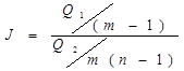 где х ij - отдельноеi -е измерение наj -ом приборе. Величину Q2 называют суммой квадратов отклонений внутри серии. Она характеризует остаточное рассеивание случайных погрешностей одного прибора. При таком анализе допускается, что центры нормальных распределений случайных величин равны, в связи с чем все mn измерения можно рассматривать как выборку из одной и той же нормальной совокупности. Чтобы убедиться в возможности такого допущения, вычисляют критерий: