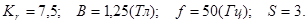 Коэффициент усиления каскада Определим параметры импульсного трансформатора на ферритовом кольце Параметры ферритового кольца: начальная магнитная проницаемость: средняя длина магнитных линий: площадь поперечного сечения: индуктивность намагничивания сердечника трансформатора:
