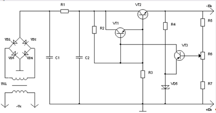 Рис.3.1 — Источник питания СИФУ Определим минимально допустимое входное напряжение стабилизатора: