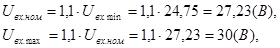 Номинальное и максимальное значения напряжения на входе стабилизатора при колебании сети на +10%: