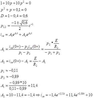 il (0-) = 10 А i2 (0-) = 0 А 2) Установившийся режим: 3)