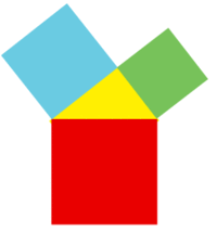 Доказательство Евклида Идея доказательства Евклида состоит в следующем: попробуем доказать, что половина площади квадрата, построенного на гипотенузе, равна сумме половин площадей квадратов, построенных на катетах, а тогда и площади большого и двух малых квадратов равны. Рассмотрим чертеж слева. На нём мы построили квадраты на сторонах прямоугольного треугольника и провели из вершины прямого угла С луч s перпендикулярно гипотенузе AB, он рассекает квадрат ABIK, построенный на гипотенузе, на два прямоугольника – BHJI и HAKJ соответственно. Оказывается, что площади данных прямоугольников в точности равны площадям квадратов, построенных на соответствующих катетах. Попытаемся доказать, что площадь квадрата DECA равна площади прямоугольника AHJK Для этого воспользуемся вспомогательным наблюдением: Площадь треугольника с той же высотой и основанием, что и данный прямоугольник, равна половине площади заданного прямоугольника. Это следствие определения площади треугольника как половины произведения основания на высоту. Из этого наблюдения вытекает, что площадь треугольника ACK равна площади треугольника AHK (не изображённого на рисунке), которая, в свою очередь, равна половине площади прямоугольника AHJK. Докажем теперь, что площадь треугольника ACK также равна половине площади квадрата DECA. Единственное, что необходимо для этого сделать, – это доказать равенство треугольников ACK и BDA (так как площадь треугольника BDA равна половине площади квадрата по указанному выше свойству). Равенство это очевидно: треугольники равны по двум сторонам и углу между ними. Именно – AB=AK, AD=AC – равенство углов CAK и BAD легко доказать методом движения: повернём треугольник CAK на 90° против часовой стрелки, тогда очевидно, что соответствующие стороны двух рассматриваемых треугольников совпадут (ввиду того, что угол при вершине квадрата – 90°). Рассуждение о равенстве площадей квадрата BCFG и прямоугольника BHJI совершенно аналогично. Тем самым мы доказали, что площадь квадрата, построенного на гипотенузе, слагается из площадей квадратов, построенных на катетах. Идея данного доказательства дополнительно проиллюстрирована с помощью анимации, расположенной выше.